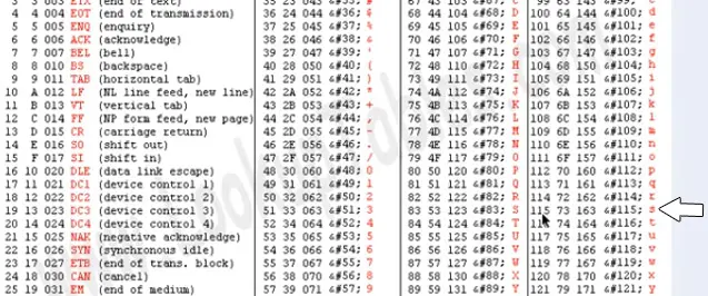 Now we check the value of 115 in the ASCII sheet.
