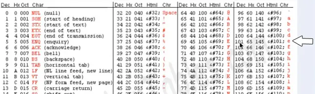 Let us check the value of the second letter, E. It is 101.