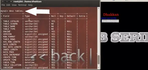 desc tables;
