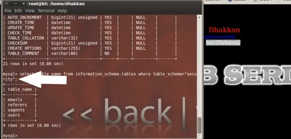 Before continuing to the front-end attack we want to discuss the system database, which is information_schema. So we use it through