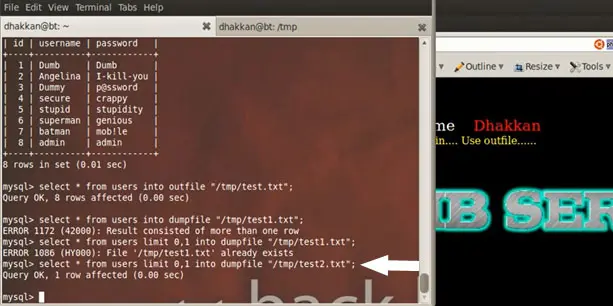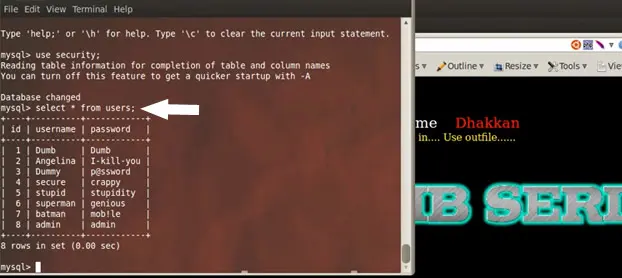 Task completed! We have the login name Dumb and the password is Dump. So basically we added a parameter to the URL and pointed that parameter to the first record. There was an immediate query from the browser to the database table to fetch the record for id=1. Similarly, you can fire the query for subsequent records like 2, 3, 4....