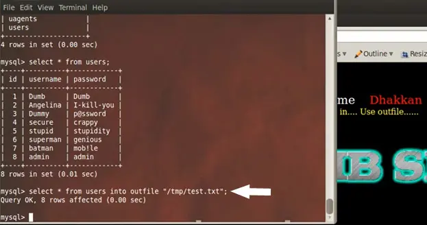 After injecting this type of code, the database always shows different usernames and passwords. Now we use the union select command to get more sensitive information from the database. Here is the query we use: