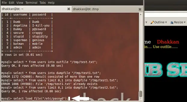 Now we come to the main point that we were working on, which was dumping the database in the form of a sql error.