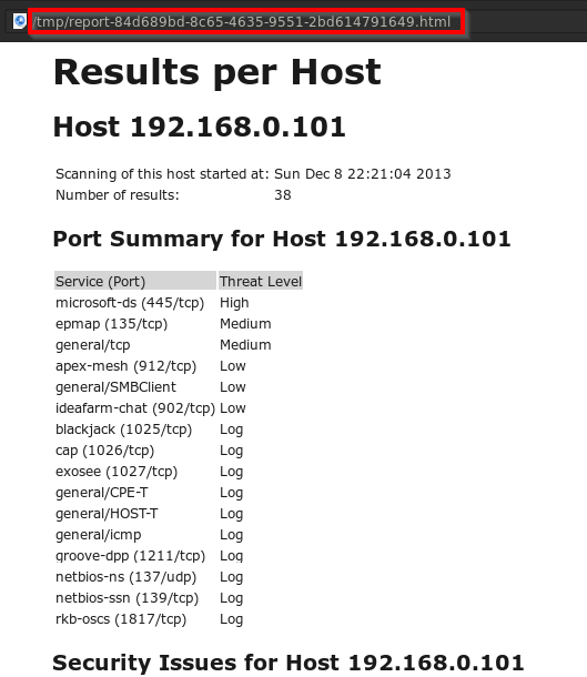 The OpenVAS has a bug in the report format: Whenever I tried to download PDF or XML formats, it gives blank report, so again I download the report in HTML format and this format is working