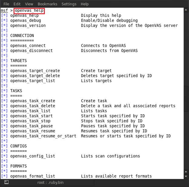 Now type in openvas_help and it will show all usage commands for OpenVAS.