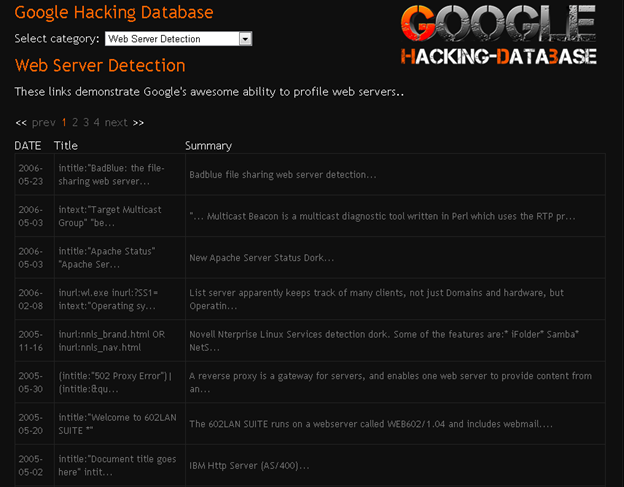 For example, a google dork like "Microsoft-IIS/6.0" intitle:index.of" can be used to detect the server which is running Microsoft IIS 6.0. Another advantage of this is that it gives a little anonymity, as well as helping pen testers to attack or perform a VA with more precision.