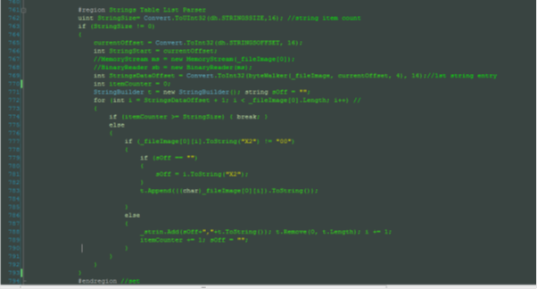 The string parsing code segment later down in the parsing code is shown in the illustration below: