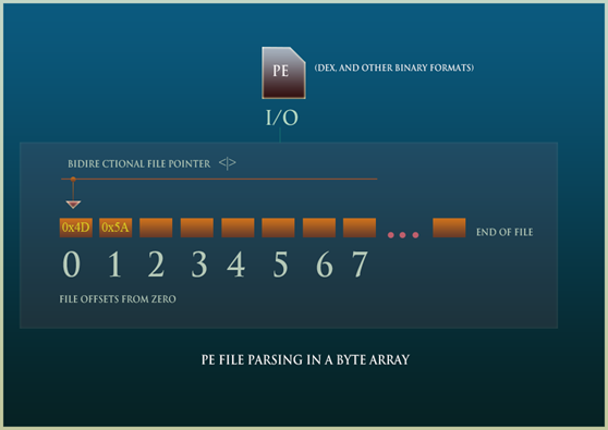 [*] Saving the file in memory as a byte [], its important to keep the current file pointer updated. Lend is a function for converting to LITTLE ENDIAN.