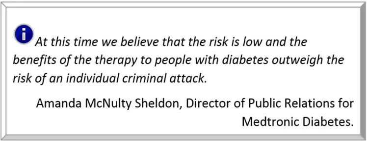 Basu, E. (2013). Hacking Insulin Pumps And Other Medical Devices From Black Hat. Retrieved on 22/04/2014 from http://www.forbes.com/sites/ericbasu/2013/08/03/hacking-insulin-pumps-and-other-medical-devices-reality-not-fiction/