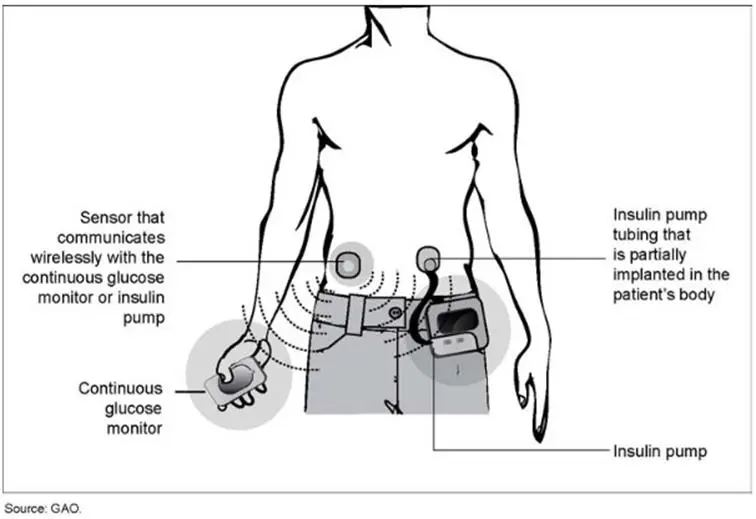 Diagram 1 and Diagram 4 are provided by GAO in their "Information Security of Active Medical Devices" report (page 6 and page 7). Retrieved on 22/04/2014 from http://www.gao.gov/assets/650/647767.pdf