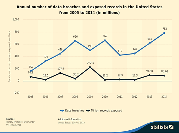 - In 2015, the average cost of a data breach has increased by 23% since 2013 to reach $3.8 million.