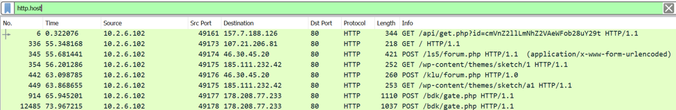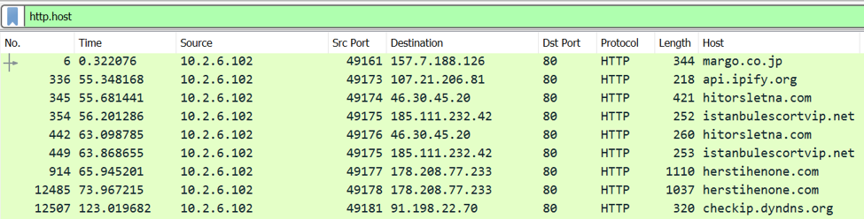 As shown above, the filtered traffic now includes a column for HTTP hosts. This is doable for any field in a packet, which is extremely useful when searching for abnormalities in a certain type of traffic in a capture.
