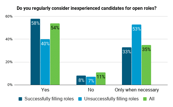 Successful hiring managers are more likely to consider inexperienced candidates