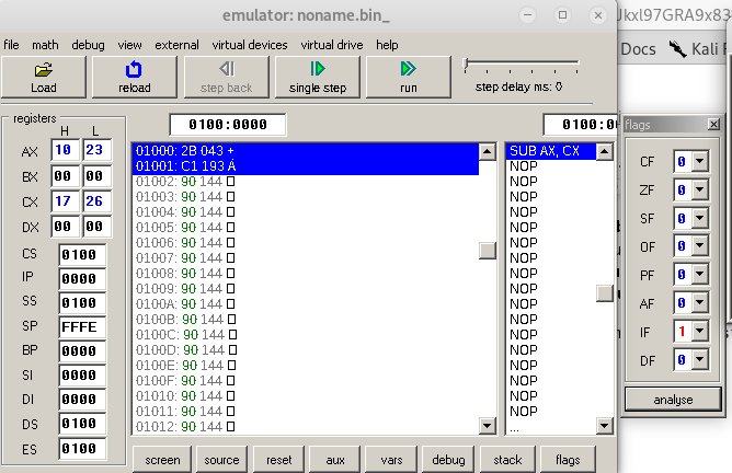 Figure 7: Registers AX and CX manually initialized before the execution of instructions in example 3