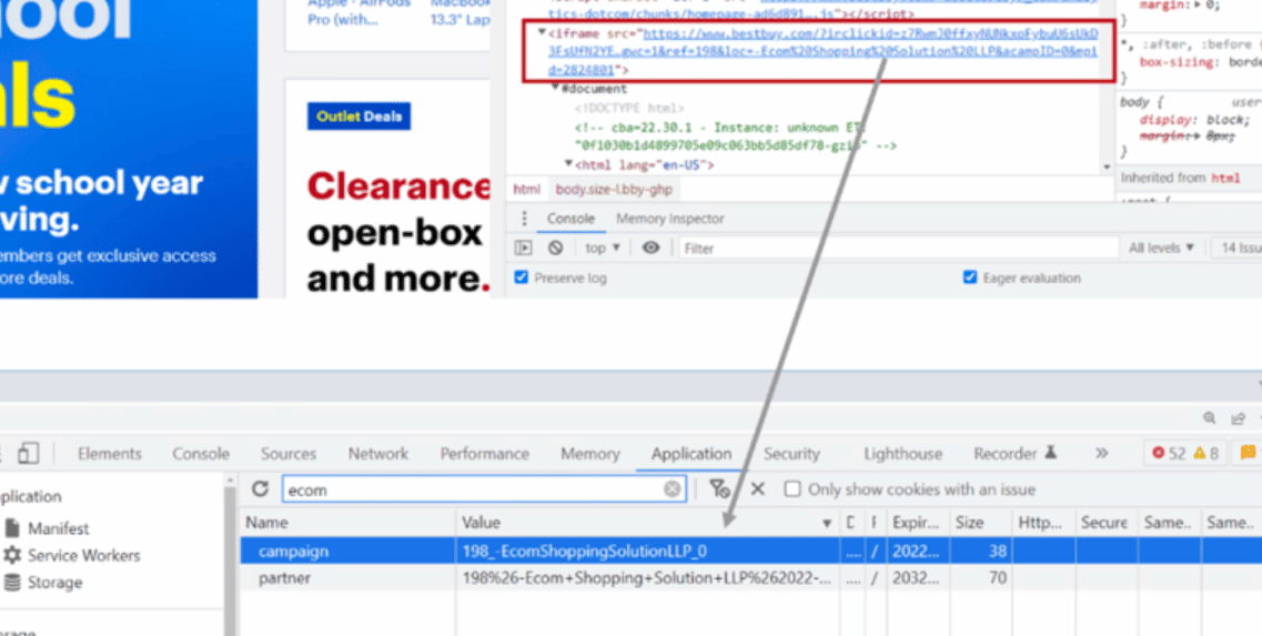 Figure 4: Iframe injected in specific website with the cookie modified with the target affiliate ID.