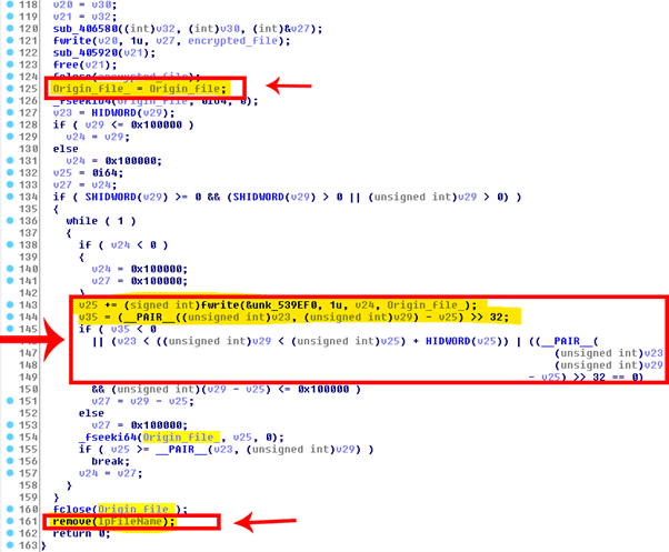 Figure 10: Origin file: DearCry ransomware file encryption block.
