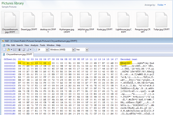 The ransomware will also add the 'DEARCRY!' string to the beginning of each encrypted file.