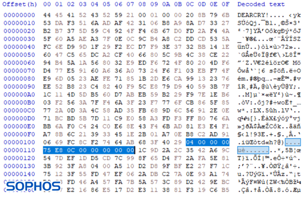 Figure 12: DEARCRY! magic bytes added to the beginning of the encrypted file.