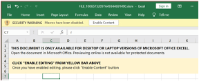 Figure 3: Emotet needs the execution of macros option enabled to continue the infection chain.