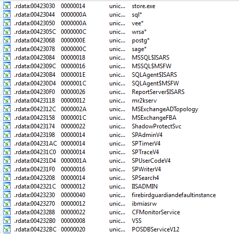 Figure 7: Part of the services stopped by HelloKitty ransomware.