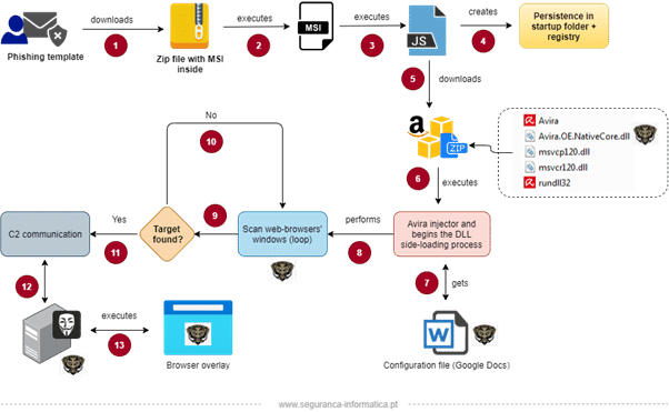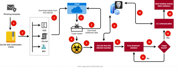 Figure 1: High-level diagram of the modus operandi of the most popular Latin American banking trojans.