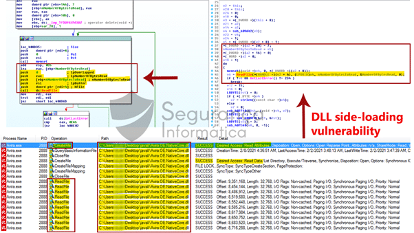 Figure 5: Avira.exe injector vulnerable to DLL side-loading attack abused by Javali trojan.