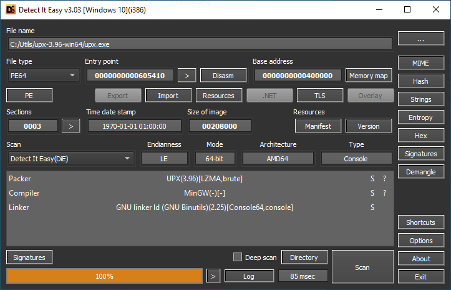 "DIE" is a cross-platform application. Apart from the Windows version, there are also available versions for Linux and Mac OS. It is used to analyze executable files, change the binary protections, search by strings, calculate the binary entropy etc. It is a useful tool to analyze binary internals.