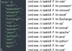 Figure 9: Processes terminated by Ragnarok during the encryption process.