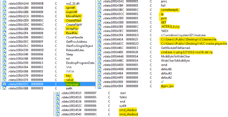 Finally, the ransomware seems to delete the shadow copies after damaging the target machine by observing the strings “cmd_shadow” and “cmd_shadow1” inside the DLL file. However, some information will still look obfuscated. The ransomware configuration is decrypted in run-time.