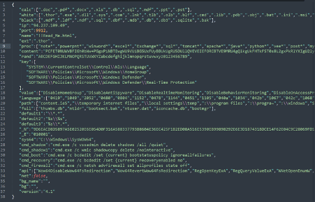 During the execution of the ransomware, the ransomware configuration is decrypted as a JSON object containing the different fields.