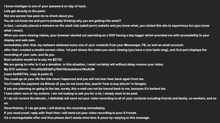 The email body sent to the victims is the following:
