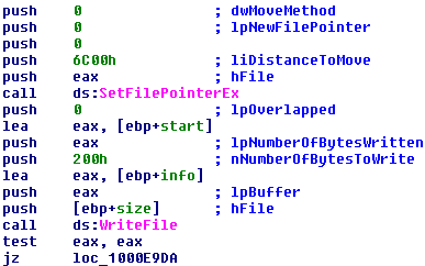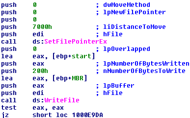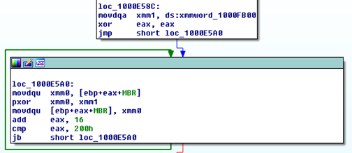 When we get out of the loop, the sample starts by overwriting the MBR with the one constructed before in the allocated memory region.