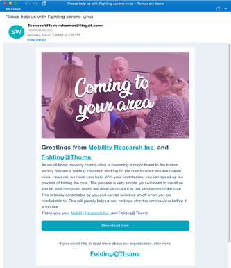 Figure 4: Email template of the Redline malware related to the COVID-19 pandemic situation.
