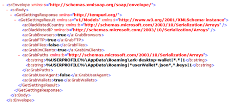 Figure 7: SOAP envelope of Redline malware when a specific task is started (password stealer module).