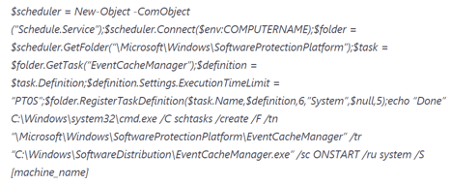 As detailed by FireEye and Volexity, lateral movement activity was observed via PowerShell remote task creation: