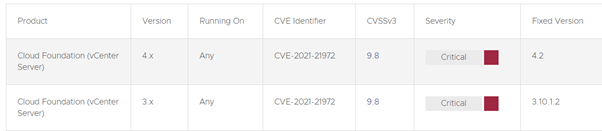 The RCE flaw allows an unauthenticated user to send a specially crafted request, which opens the door for the execution of arbitrary commands on the server-side. The flaw was tracked as CVE-2021-21972 and has a CVSS score of 9.8, affecting several versions of the software.