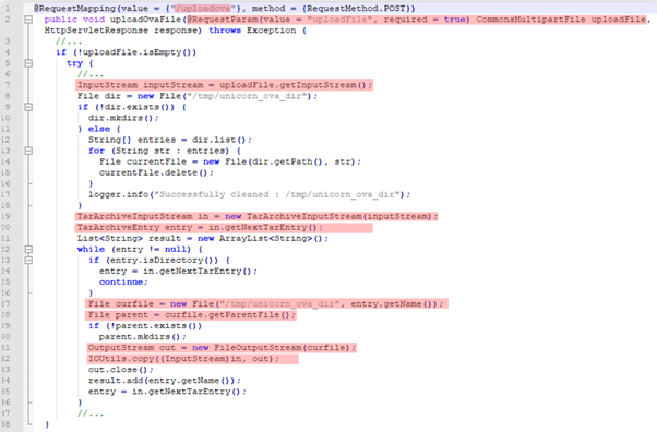 Figure 3: Part of the vulnerable code used to upload an arbitrary file into the server-side.