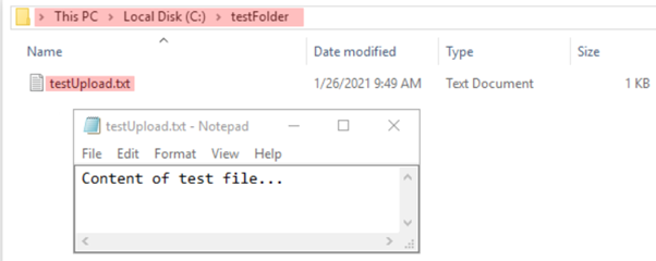 Figure 4: Text file uploaded inside an arbitrary directory (created by researchers).