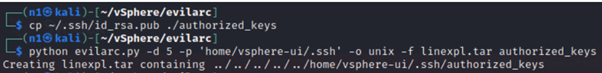By using a .tar evil file and uploading it, researchers were able to create a file on the server-side as presented in figure four.