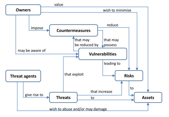 Figure 1: The relationships between elements of a threat model. (Source)
