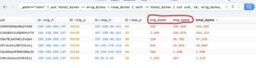 The "conn" log file shows us the data transferred between connection attempts. Looking at the overall number of bytes transferred to and from a system can help with baselining and identifying spikes in activity.