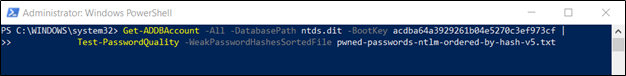 For example, to perform an audit based on the passwords listed in the HaveIBeenPwned database, your PowerShell command should look something like this: