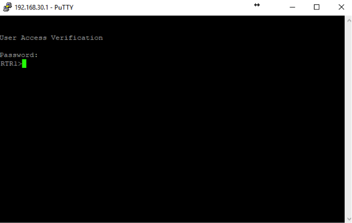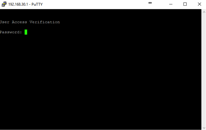 Your Telnet session then opens like this. Let’s log in and get to the prompt by entering our password: