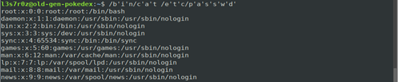 The screenshot below shows an example of a bypass that can be applied to list the contents of the /etc/passwd file. This technique can be used to discover command injections.
