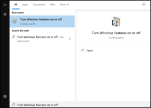 - Search for “Turn Windows features on or off."