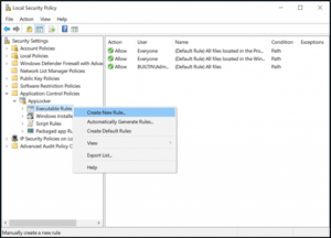 Under Application Control Policies, right-click on Executable Rules under AppLocker as shown.