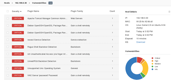 Nessus even allows you to drill down to specific hosts and vulnerabilities and get more information on how they were discovered, together with recommendations on how to patch identified risks. See below: