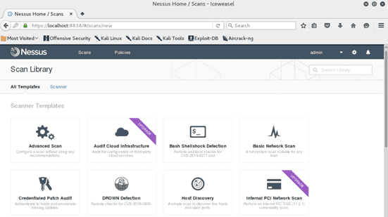 The templates shown above will be limited within the free version of Nessus. Your license will determine the version of Nessus you use. These templates will be more in number and capability for the commercial version.