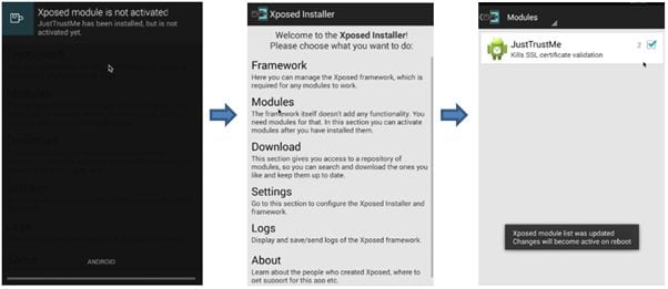 Step1: Download the JustTrustMe apk (Xposed Module) from here